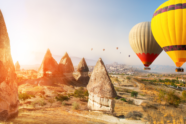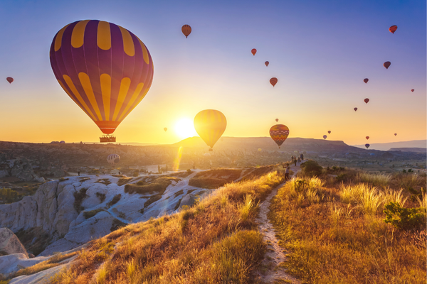 The best way to experience Cappadocia’s unique natural beauty is undoubtedly by taking a hot air balloon ride. Rising into the sky at sunrise, the balloons offer a bird’s-eye view of the region’s famous fairy chimneys, valleys, and expansive landscapes.